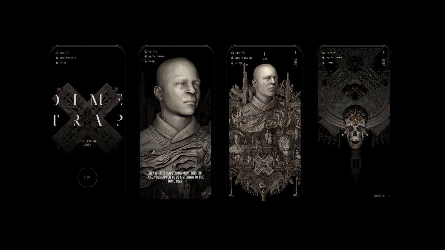 Taking formative moments from T.I.’s life, renowned sculptor Kris Kuksi was approached to create an incredibly detailed sculpture on which he could frame these stories into The Dime Trap album artwork. The goal was to emphasize the personal story and life events from T.I., introduce and bring the album artwork from Kris Kuksi to life in an interactive experience like you have never seen before.